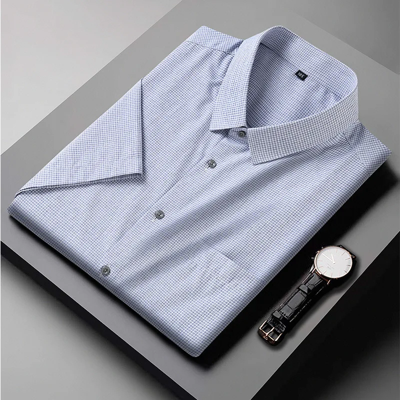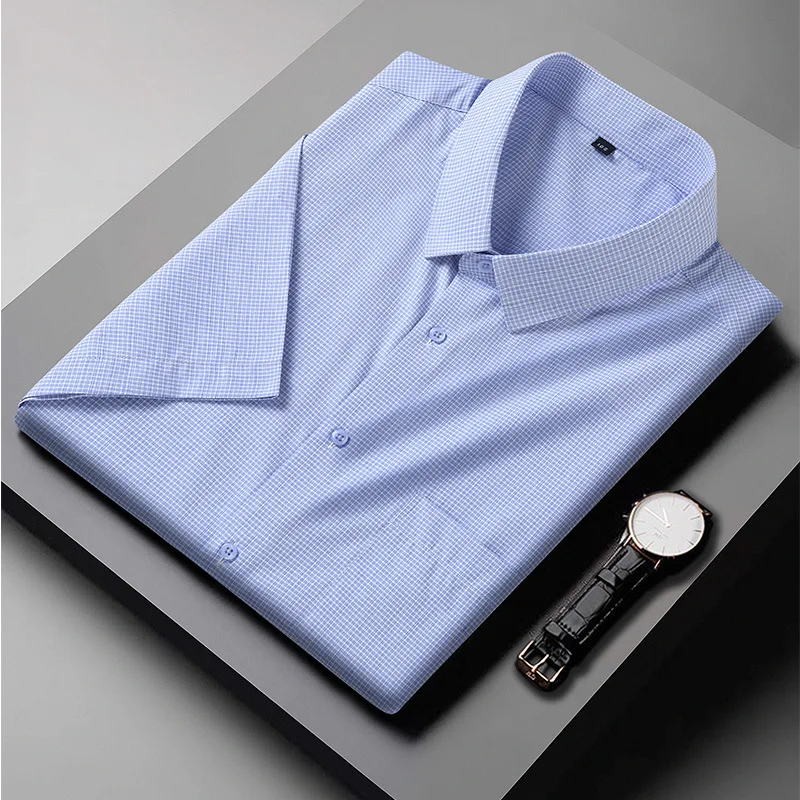 Summer new large size men’s short sleeve plaid shirt Men’s business formal fine plaid half-sleeved shirt Large size7XL 8XL